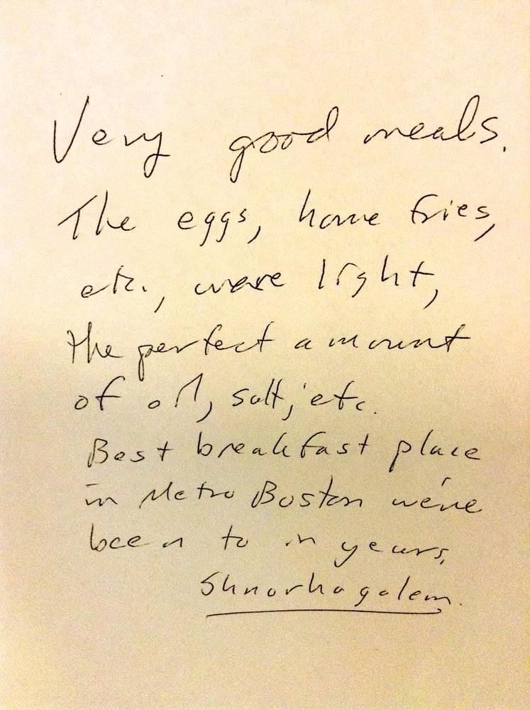 “ We've been here countless times since moving to the area 4 years ago, it's absolutely one of our regular favorites and we are TOTAL foodies. I'm shocked that the yelp rating isn't better; some of the people reviewing it seem to just be whiners. (update: I just read my OWN past review below... I have no memory of writing it all those years ago... that was back when we were broke, don't come here if you're broke...) Yes, there can be a wait if you go at a popular time (this should tell you the food is great). No, the wait staff isn't here to fawn all over you: Welcome to Boston. We keep coming back eagerly because it's cute, bright (HUGE) windows, and the food is amazing - if you're looking for a cute/fun lunch with friends or an AMAZING weekend brunch, not many other places in Belmont, Watertown, or Arlington will fit the bill as nicely as Vicki Lee's. - Everything is made fresh to order. The fruit in the fruit cups is actually good, even in the winter. - The menu features tasty standbys (on a weekday, do NOT miss their yogurt/fruit/granola parfait; I don't even LIKE this type of thing but I HAVE TO HAVE it when we're here) - But the menu is also updated regularly and seasonally with fresh new ideas or seasonal ingredients. Check out the chilaquiles I scored today! - Their cranberry-orange scones are to DIE for, the only scones I've ever liked. Moist and tangy, SO good. - Daily grain bowls are great - On the weekends, amazing brunch selection. Love their eggs benedict and this place has the only French toast I've ever cared for (they use Italian or French bread with a chewy texture, fresh fruit, and house made whipped cream). Their desserts are to die for but we're usually stuffed. - Even their drink menu always has something fun and new on it. Currently: Brown butter salted caramel mocha (or latte?). But their iced mochas here are what you HAVE to get. They use their own house made chocolate (not sure what it'd be called - thicker than syrup) - be sure to order it WITH whipped cream or it won't come with any. The only thing I wouldn't necessarily recommend here is some of the pastries in the window that I believe are not made in house. But we always get their house made granola to go, and often the beet/blue cheese salad too - SO good. We really love this place. If you're in the area, you won't find a better lunch or Sunday brunch. ”